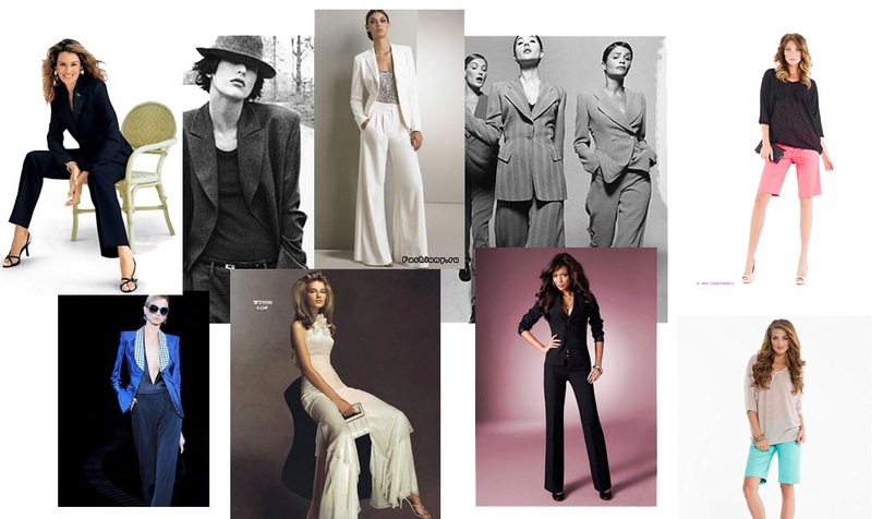 4. Также хорошо идут различные стильные брючные костюмы, можно добавить немного фривольности, сочетать пиджак с шортами или надеть комбинезон.